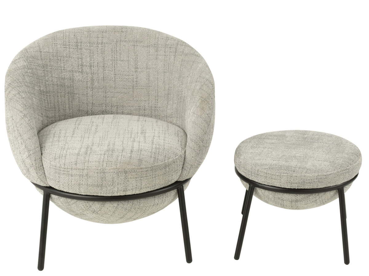Loungestoel + Poef Esmeralda Lichtgrijs J-line